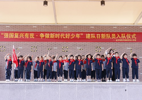 (通讯员 陈筛筛)鲜艳的红领巾,在胸前飘扬;庄严的誓言,在心中激荡。10月13日,一场以“强国复兴有我,争做新时代好队员”为主题的中国少年先锋队新队员入队仪式在美丽的金华海亮外国语学校校园隆重举行,25名新队员光荣加入了中国少年先锋队。