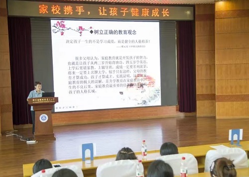 接着,沈书记为全体家长进行《家校携手,让孩子健康成长》的主题讲座。沈书记主要讲了以下三方面内容。