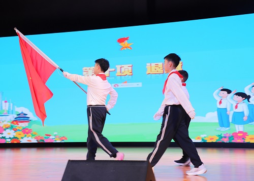 最后,在退旗曲中,仪式圆满落下帷幕。队员们有序退场,胸前的红领巾熠熠生辉,映照着他们坚定的目光和灿烂的笑脸。