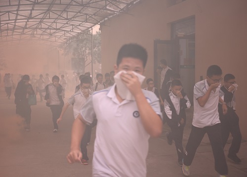温州育英实验学校初中部开展宿舍消防安全演练(图)