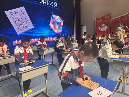 (通讯员 陈乾)近日,绍兴市上虞区华维文澜小学报告厅化身为思维的竞技场,一场别开生面的智力运动会——首届“红领巾小创客”大赛火热上演。全校学生踊跃参与,在数字华容道、三阶魔方、四阶魔方、数独几大项目中展开激烈角逐,展现了文澜学子出色的逻辑思维、空间想象与快速反应能力。