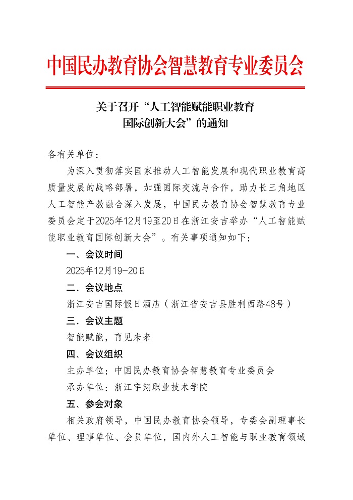 关于召开“人工智能赋能职业教育国际创新大会”的通知(图)