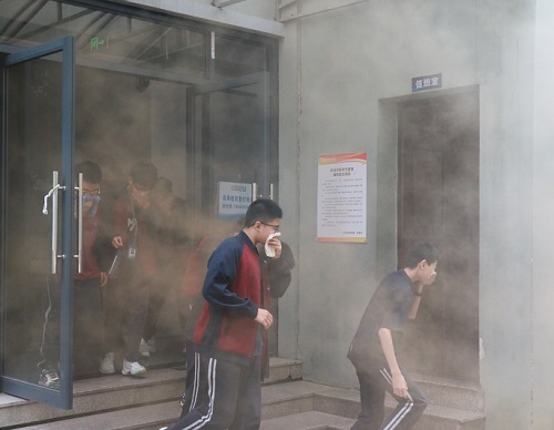 随着警报声响起,演练正式开始。学生们在老师的引导下,迅速而有序地从寝室撤离到指定的安全区域。在撤离过程中,学生们表现出了良好的纪律性和团队协作精神。他们用湿毛巾捂住口鼻,弯腰低行,避免吸入有毒烟雾。到达安全区域后,各班级迅速清点人数,确保无一人遗漏。