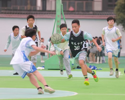 每天下午的课外活动时间,就是精彩的开赛时间。随着一声哨响,场内场外的热情瞬间被点燃,只见双方运动员个个英姿飒爽,精神饱满,大家你来我往,你争我抢,攻防激烈,在激情的角逐中将高超的球技展现得淋漓尽致。队员们默契的配合、果敢的抢断、准确的投篮,一声声激动的呐喊声,一个个跃动的身影,一个个胜利的微笑,一次次沮丧的叹息……高高的跃起,快速的奔跑,漂亮的抢断,完美的过人,优美的投篮,胯下运球、转身过人、背身单打、三步上篮、仰首三分,球员们精彩的表现赢得了观众的阵阵喝彩,呐喊声使得比赛气氛不断升温,现场异常活跃,给同学们带来了一场场丰富的视觉盛宴。