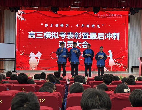 大会随后进入表彰环节,学校对一模考试中表现突出的学生予以表彰。受表彰学生的榜样力量催人奋进,进一步坚定了全体高三学子决胜首考的信心。