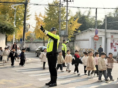 活动最后,交警叔叔带领孩子们实地实操安全过马路,孩子们成功获得定制的安全手环,小小的手环,承载着满满的关爱与守护,为孩子们的出行安全增添了一份保障。