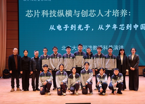 (通讯 邹颖)2025年12月9日,诸暨荣怀学校第三期荣怀大讲堂正式开讲。学校特邀北京大学教授、深圳芯片重点实验室主任、少年中国芯工程总指挥何进教授莅临,以《芯片科技纵横与创芯人才培养:从电子到光子,从少年芯到中国芯》为题开展科普讲座。