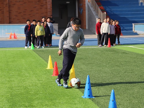 本次运动赛根据学生年龄特点,精心设计了富有趣味性、挑战性和教育性的比赛项目。一年级“萌娃接力闯关”中,孩子们在接力跑、跨栏与爬行中展现了童真与活力;二年级“轮胎滚滚乐”考验着孩子们的手眼协调与平衡能力;三年级“旋转小精灵”呼啦圈接力,既有趣又锻炼身体柔韧性;四年级“翻滚吧,少年!”组合赛融技巧与速度于一体;五年级“足球小将”绕杆运球展现了学生的球感与敏捷;六年级“绳彩飞扬”跳长绳比赛则体现了团队的高度默契与节奏感。