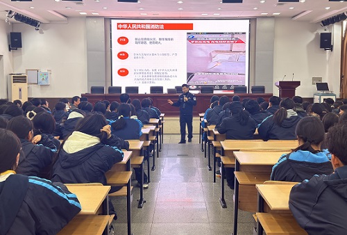 (通讯员 朱小虎)为增强学生法治观念,提升安全防范意识,12月23日,嘉兴秀水中专特邀嘉兴市公安局经开分局城南派出所四级高级警长张秋江来校,开展法治安全教育讲座。学校副校长严叶伟、安全处主任朱小虎、各系部德育副主任及300余名师生共同参加。