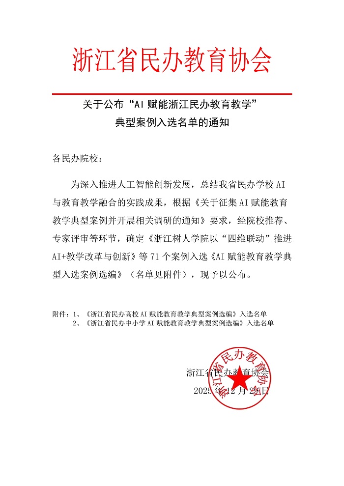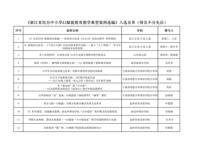 关于公布“AI赋能浙江民办教育教学”典型案例入选名单的通知(图)