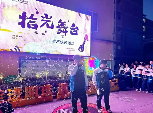 “拾光舞台”由宋军校长提议,校学生会联合音乐组策划执行,旨在为学生搭建展示才华的平台,丰富校园文化生活。活动前期,学生会干部高效完成宣传推广与场地布置工作,确保活动顺利开展;活动现场由章优优老师主持,各年级同学自发聚集观演,形成了立体生动的互动场景。