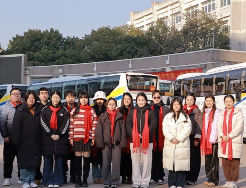 送考现场,十余辆送考大巴整齐排列。学校领导、班主任及任课教师均佩戴寓意吉祥的红色围巾,早早来到学生中间,进行考前最后的物品检查与事项叮嘱,以温暖的笑容和坚定的握手缓解学生紧张情绪,传递鼓励与期望。