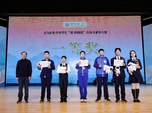 据悉,义乌外国语学校一直以来重视学生的古诗文阅读教学,学校设立“阅读节”,开展阅读比赛活动,评比阅读积极分子,校园阅读蔚然成风。在2025年义乌市“爱・尚阅读”古诗文素养大赛复赛中,该校140名学生获奖,其中一等奖33人,二等奖45人,三等奖62人,初中部获全市团体第一名,小学部、初中部、高中部均获团体奖。