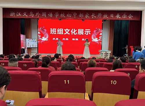 (通讯员 钟乐平)遇见是故事的开始,走近是理解的前提,携手是美好的延续,家校沟通,从心开始。2026年3月26日,浙江义乌外国语学校初中部七、八年级的家长分别从下午至晚上陆陆续续来到校园,齐聚学生剧院,参加家长开放日展示活动。