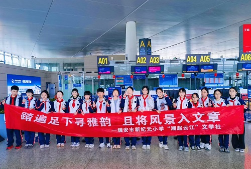 据悉,此次微游学活动,将语文课堂从校园延伸到轻轨、机场,让文学社成员在行走中观察、在实践中写作、在探究中成长,既锻炼了观察力与写作力,更厚植了家国情怀与家乡认同。“踏遍足下寻雅韵,且将风景入文章”,瑞安市新纪元小学“潮起云江”文学社将持续开展此类行走课堂,让孩子们在实践中丰盈心灵、提升素养,用文字书写成长,用脚步丈量家乡。