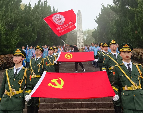 早晨7时18分,师生在行政楼空地前迅速整队,冒雨出发。上午8时40分,队伍整齐抵达东山烈士陵园。雨声淅沥,气氛庄重肃穆。
