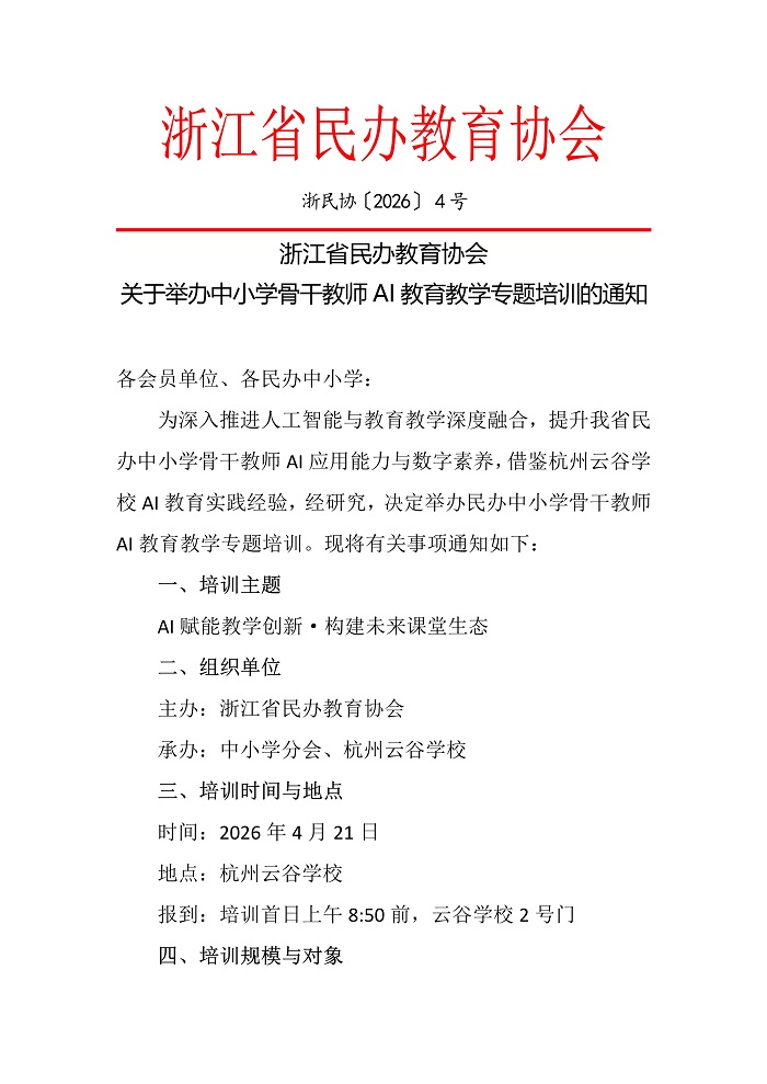 浙江省民办教育协会关于举办中小学骨干教师AI教育教学专题培训的通知(图)