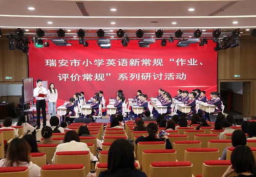 (通讯员 赵伊妮)为深入贯彻温州市小学英语新常规要求,聚焦作业设计与教学评价核心环节,优化课堂教学实施路径,探索高段英语新旧教材融合教学策略,4月23日上午,由瑞安市教育发展研究院主办的小学英语“作业、评价常规”系列研讨活动在瑞安市新纪元小学顺利举行。全市五、六年级英语教师齐聚一堂,以课例展示、主题阐述、观点分享、专家讲座等形式,共研教学新路径、共促教学质量提升。